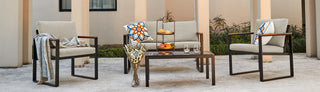 Cet ensemble de terrasse propose une structure métallique solide, résistante à la rouille et imperméable aux intempéries. Il est accompagné de coussins en Olefin de 4 pouces, résistants à l'eau pour le confort. Facile à assembler, idéal pour les espaces extérieurs.