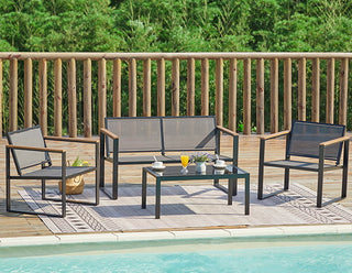 Ensemble de conversation pour 4 personnes avec dossiers en maille et table basse de patio