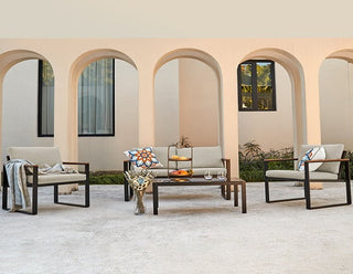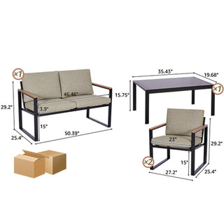 Ensembles classiques de 4 pièces de meubles de patio modernes qui rendent votre espace extérieur plus confortable, où vous pourrez prendre un thé l'après-midi avec votre famille, avoir une conversation avec vos amis ou profiter d'un bon film, car ils proposent diverses combinaisons avec un fauteuil double durable, un fauteuil simple et une table basse.