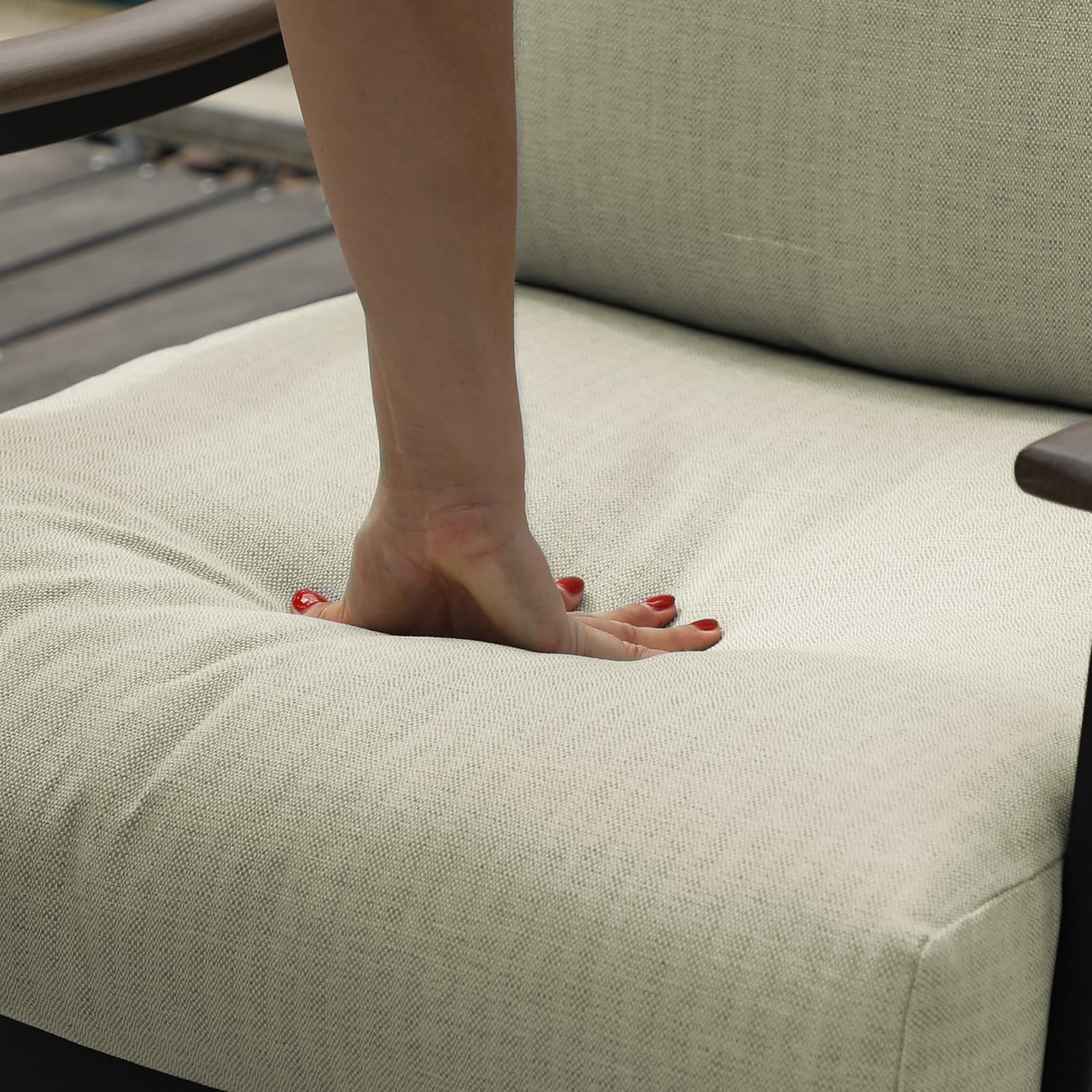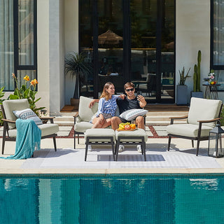 Wir bieten Ihnen die Möglichkeit, dieses Terrassenmöbel-Set einzeln zu erwerben. Sie können ein einzelnes Sofa, ein Zweisitzer-Sofa oder ein Sofa mit Hocker kaufen. Die einzelnen Elemente lassen sich beliebig kombinieren.